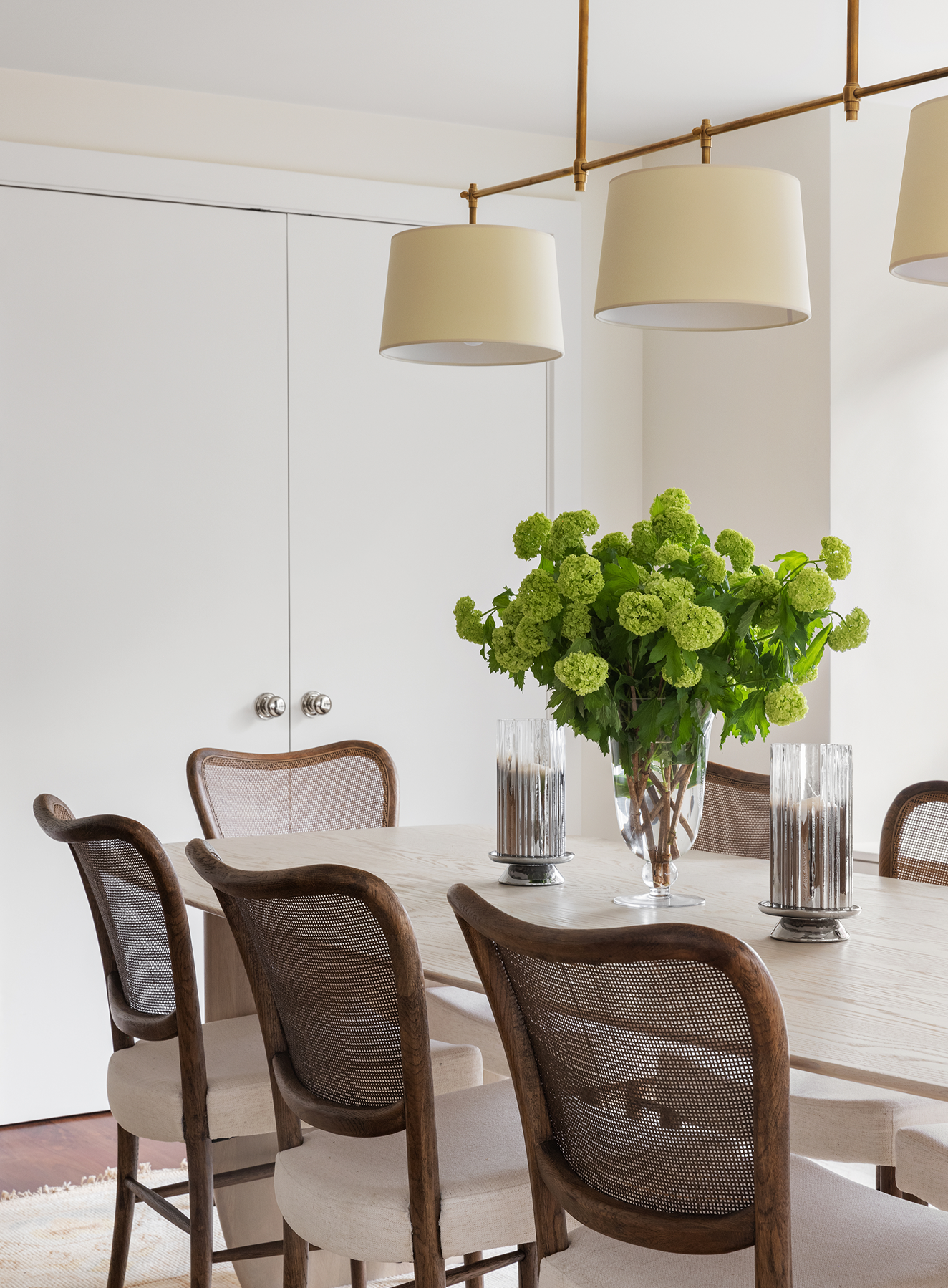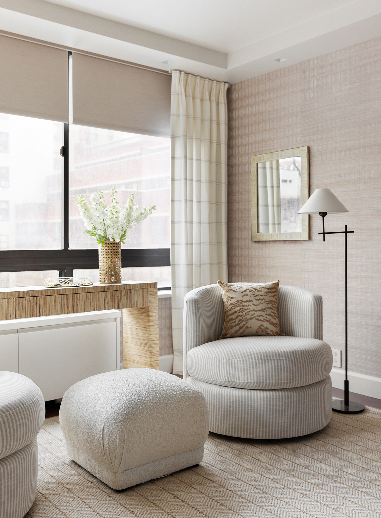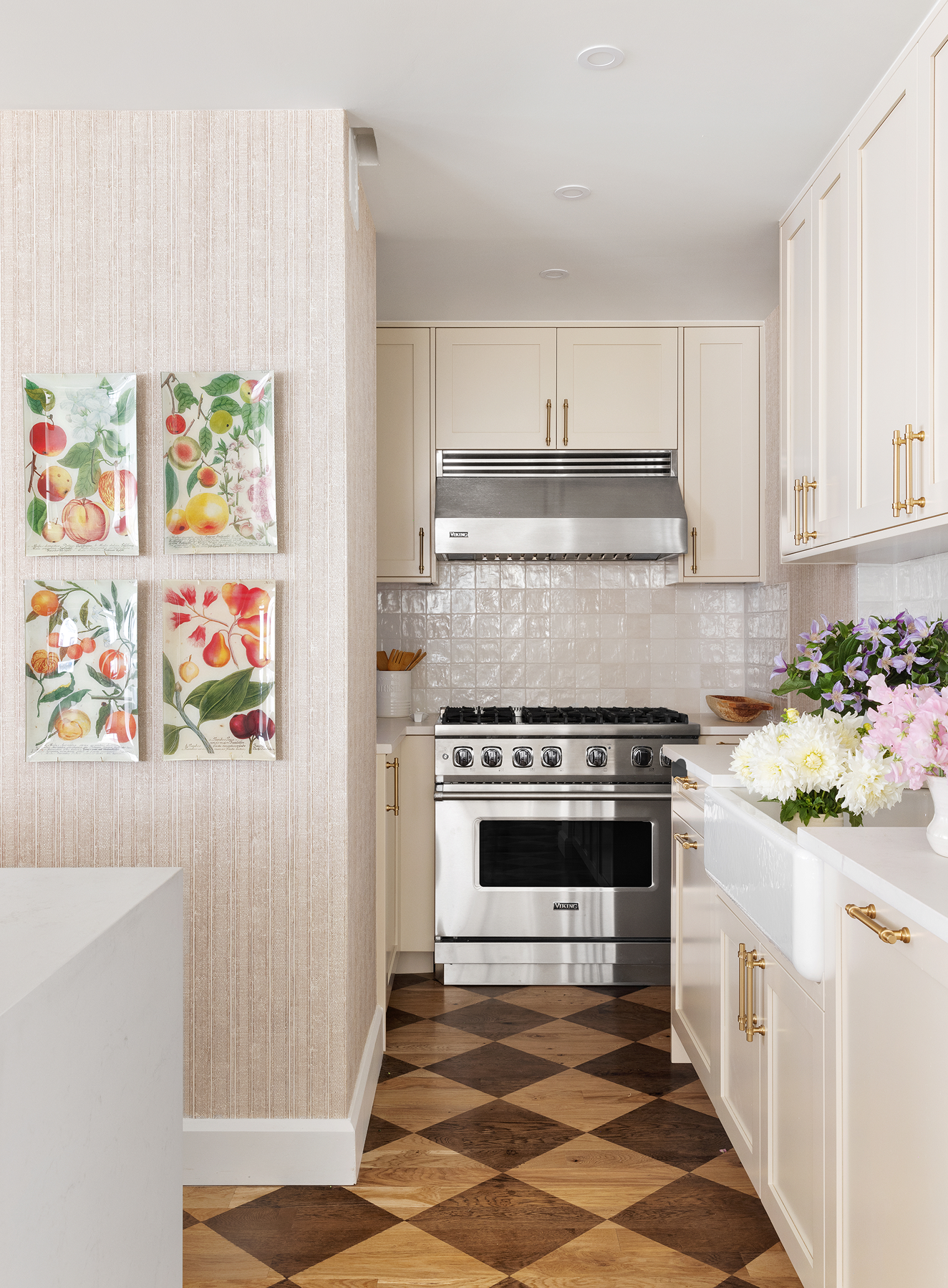 This Upper West Side renovation encompassed a full gut kitchen remodel alongside a reimagined living room, dining room, primary bedroom, and nursery. Created for a New York family on the go, the home balances a clean, transitional aesthetic with timeless whites, subtle patterns, and soft accents throughout.