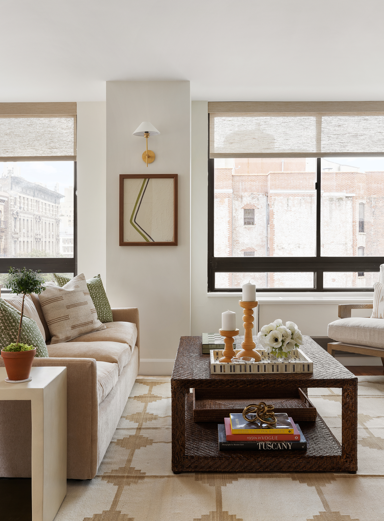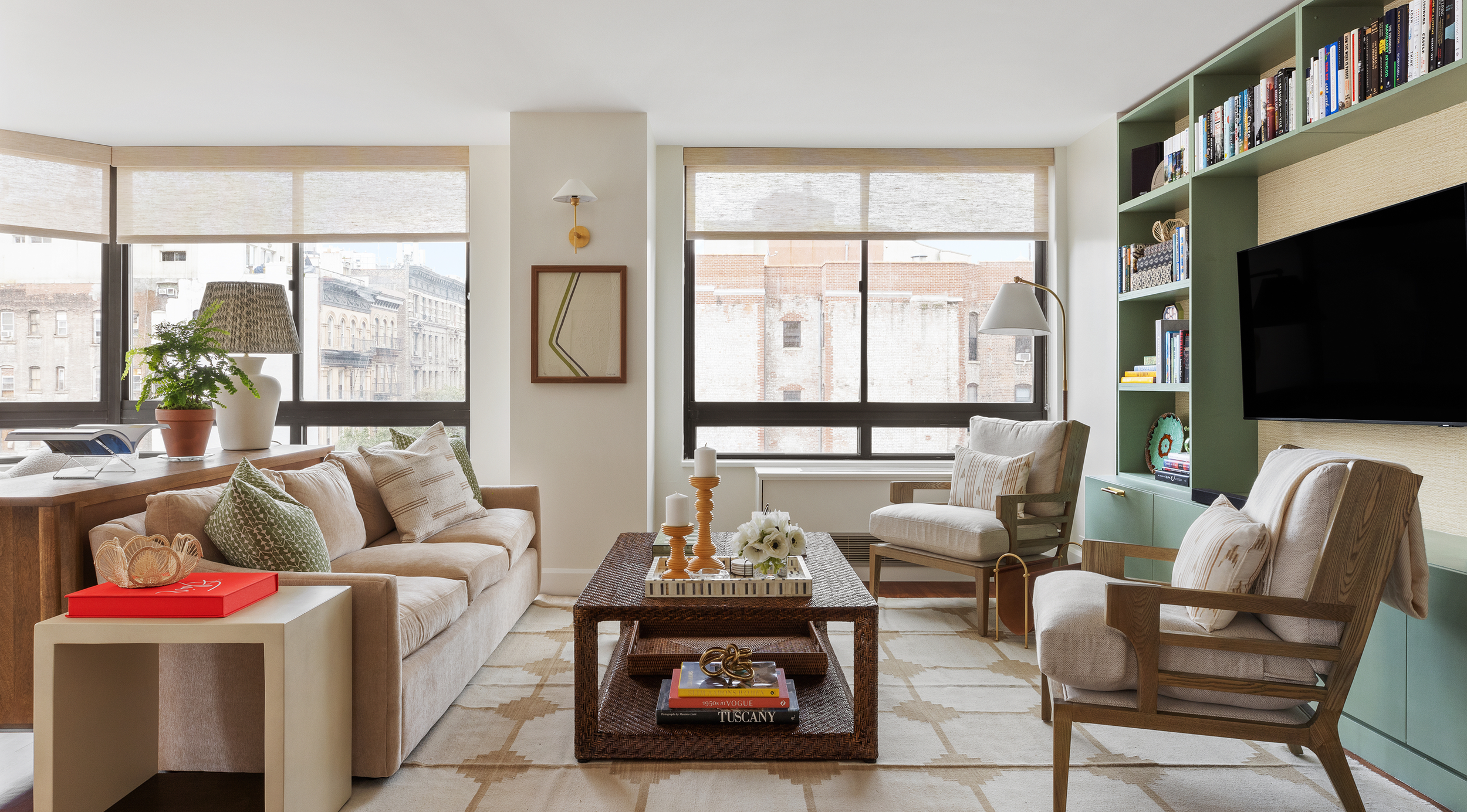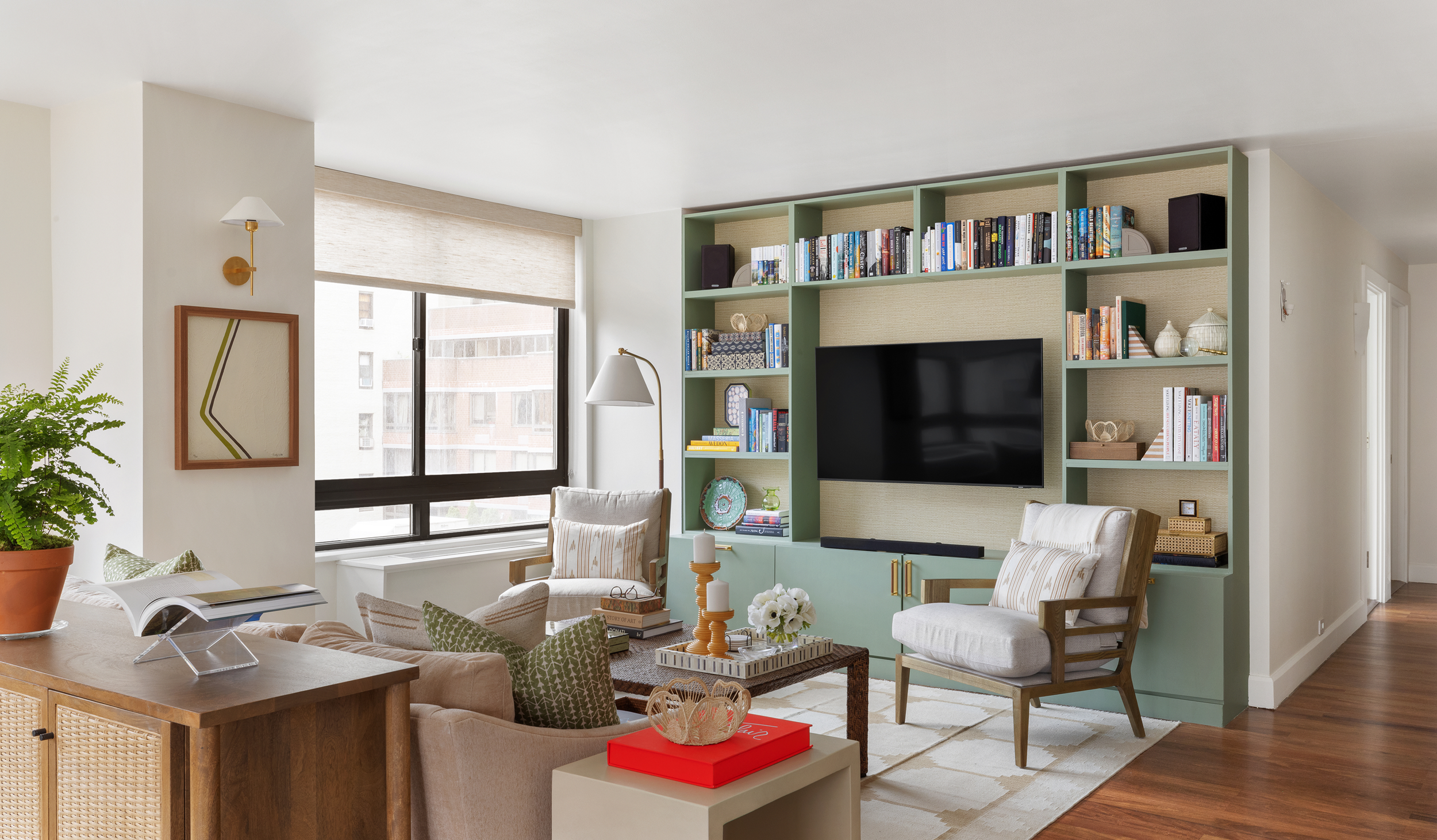This Upper West Side renovation encompassed a full gut kitchen remodel alongside a reimagined living room, dining room, primary bedroom, and nursery. Created for a New York family on the go, the home balances a clean, transitional aesthetic with timeless whites, subtle patterns, and soft accents throughout.