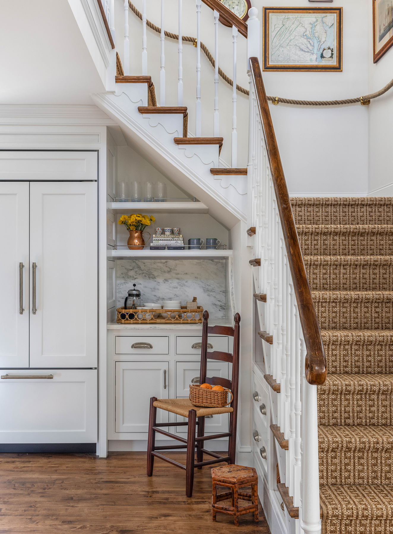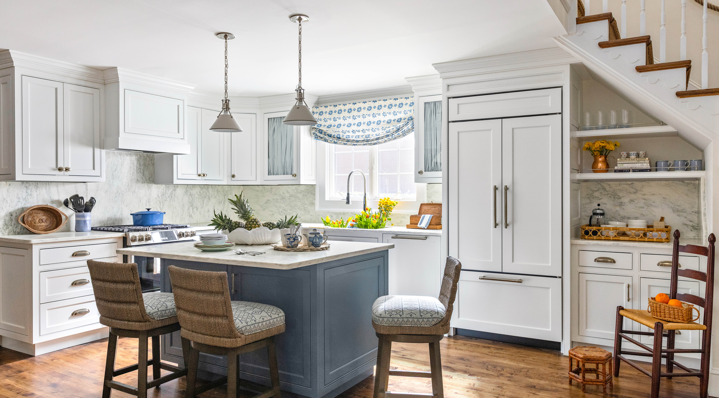 A generational Virginia Beach home was transformed through full kitchen and bath renovations, a new sunroom and reimagined entry, and a fresh approach to color and pattern. The result is a warm, modern, family-forward retreat layered with a coastal feeling.